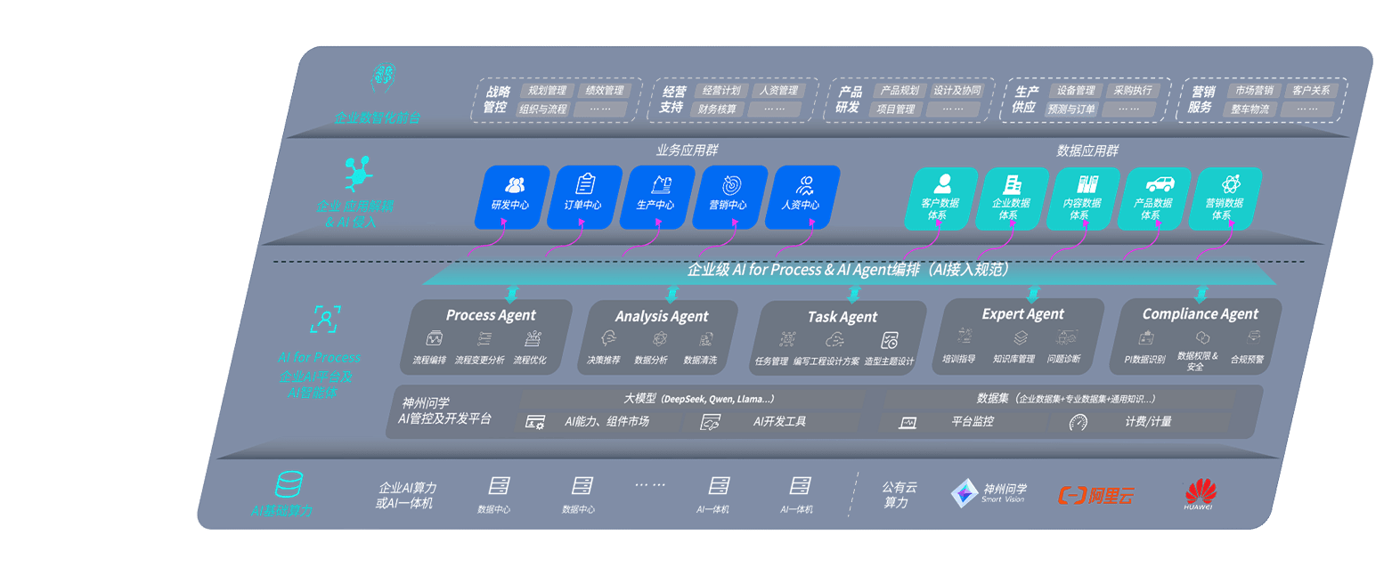 z6com尊龙问学智车解决方案是一套基于AI技术的汽车行业智能化系统,,覆盖从底层算力到顶层AI应用的全栈方案。。。。方案由算力层、、模型层和应用层组成:算力层,,方案支持多种一体机配置,,,具备云端灵活部署、、、、多云适配以及动态优化计算资源的能力;模型层,,,z6com尊龙问学平台版提供了企业级AI应用一站式构建与管理平台,,,支持基于后训练强化技术的汽车企业专属模型的训练、、、、评测和运营;应用层,,z6com尊龙问学DeepSeek版提供包括超级员工、、、智能招采、、智能营销、、、智能客服、、、AI for BI等一系列解决方案,,可助力汽车行业实现数字化转型,,让管理更智能、、响应更敏捷。。。。